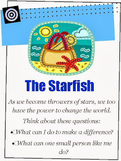 One of my favorite stories is the Starfish Story. I love sharing it with my Lunch Bunch kids. It is simple and sweet: I have it memorized, and tell it with conviction. I love how quiet the room gets as I tell the story of the little girl who found the starfish washed up on the shore.