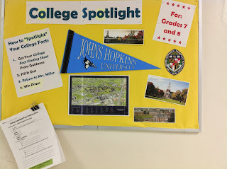 One thing that I wanted to work on this year was a new bulletin board for my College Spotlight. Highlighting a specific college each month is part of my plan to make sure that all our kids are “Career and College Ready” before they graduate from high school. Last year’s board was not very fancy or eye appealing. It did however, serve the purpose of getting kids to start looking ahead at colleges.