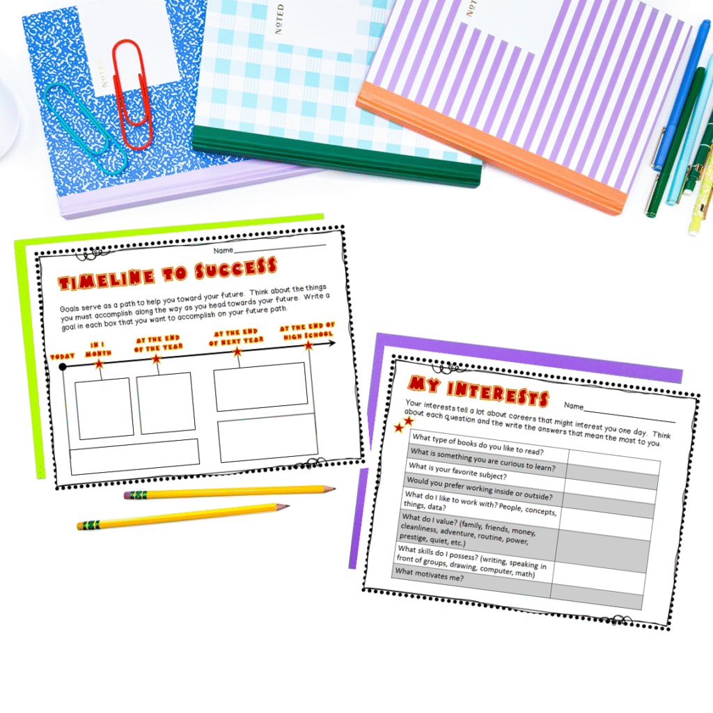 Then I had them complete worksheets to help them identify their goals, interests and “smarts.” This is just one of the worksheets I had the students complete.