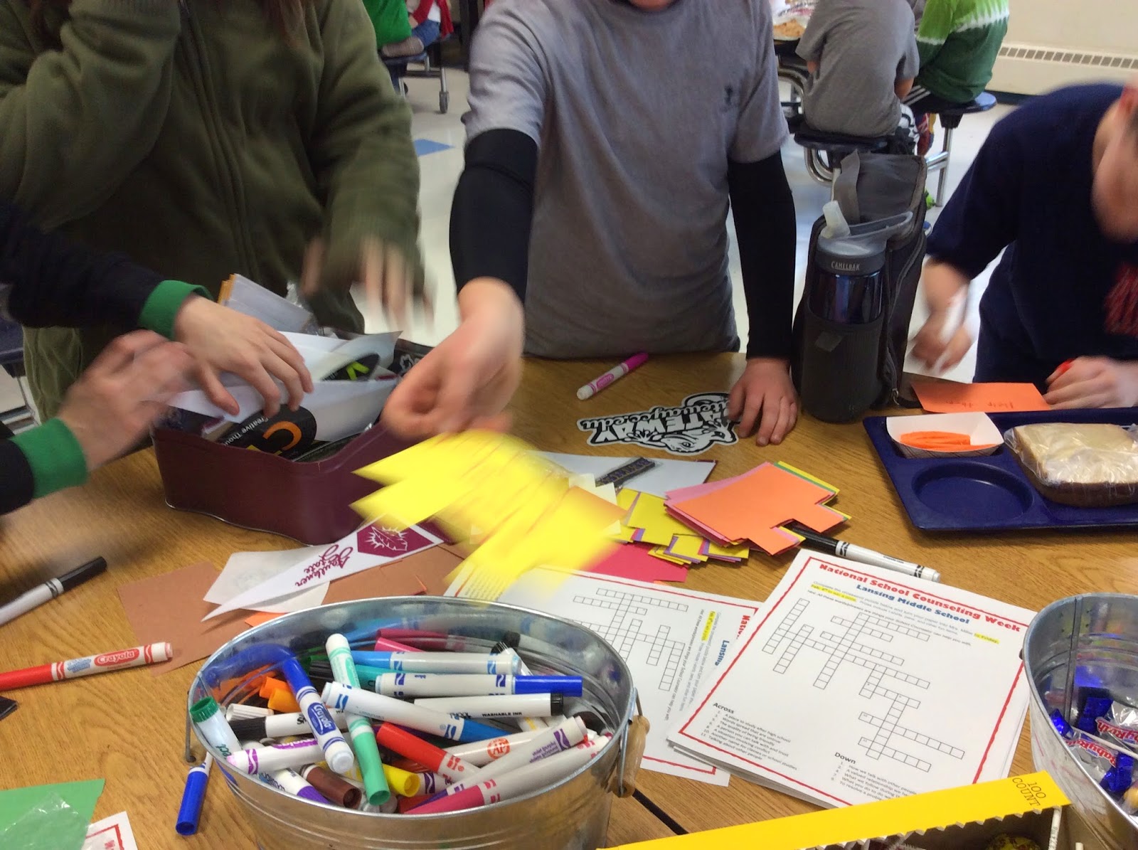 I also brought down my bucket of college goodies and if they handed me a completed NSCW Crossword Puzzle, I let them pick a prize. Of course I also had tootsie roll pops for each student.