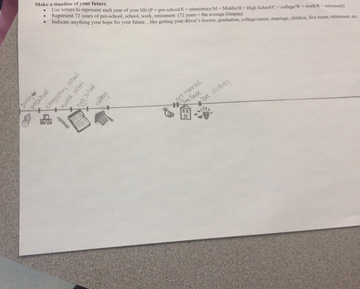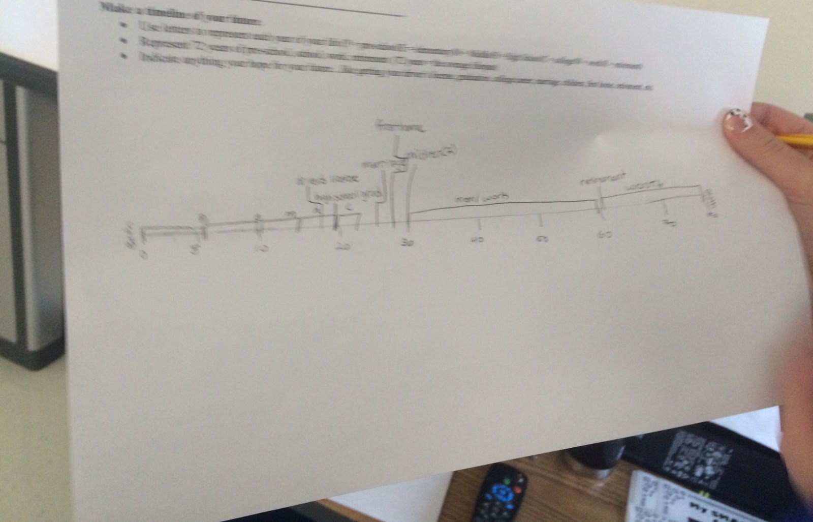 After we finished the PowerPoint, I gave each student a piece of paper and asked them to write their own timeline for their life. Here are a few of their timelines: