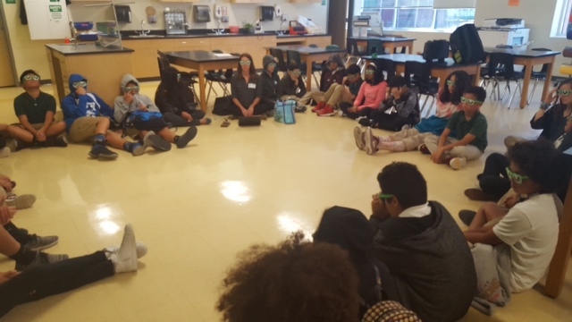 Lastly, the question I hear all the time from those who observe our program is, “So what’s up with the sunglasses?” I have two answers for that. First, wearing sunglasses during the mindfulness activity helps students avoid eye-contact and privately focus while being in a public setting. Secondly, it’s just fun. When I started doing mindfulness I noticed elementary aged kids thought it was silly, and middle schoolers thought it was weird, but when I walked in with a bag of sunglasses, the little kids really began to focus and the teenagers were more inclined to fully and willingly participate.