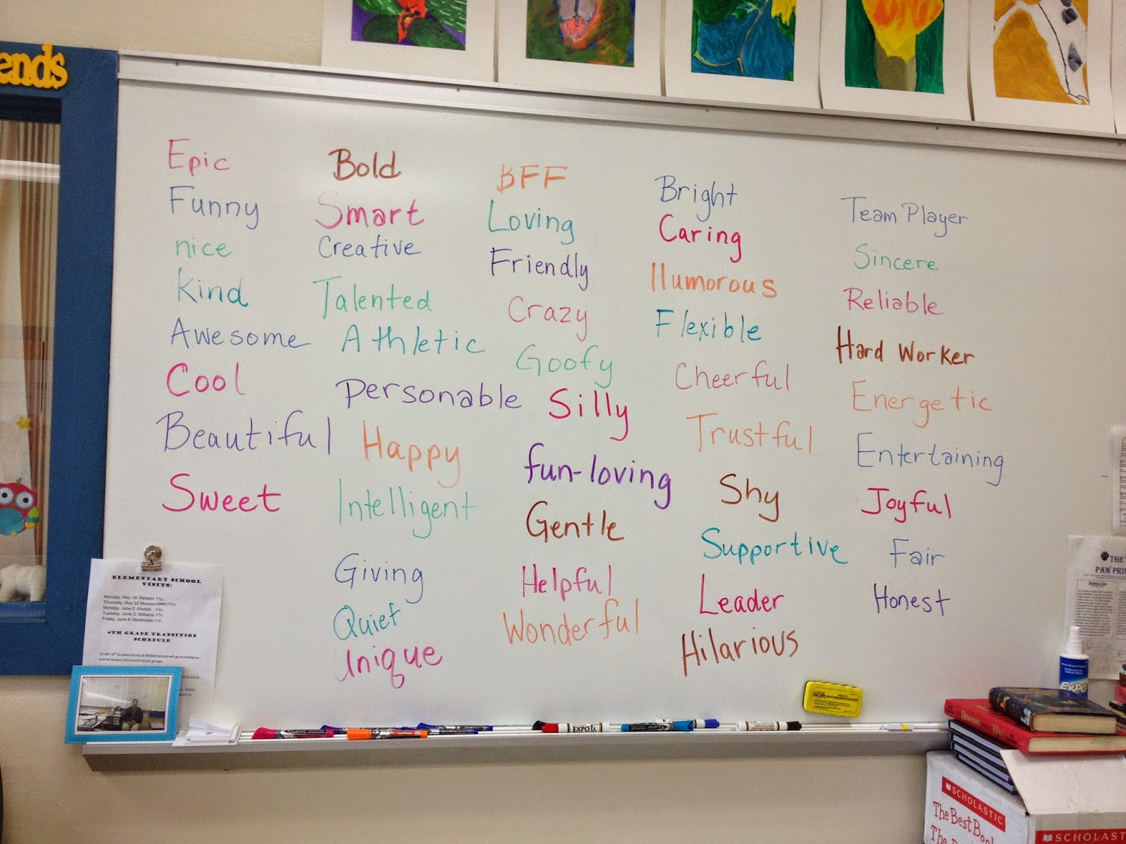 Today was the boy’s turn to say goodbye and complete their final project. I used the same words on my whiteboard as I used with the girls, but instead of writing descriptive words on initials, we wrote them on picture frames. (Click on the links to see the pictures and post about the last Lunch Bunch with my girls.)