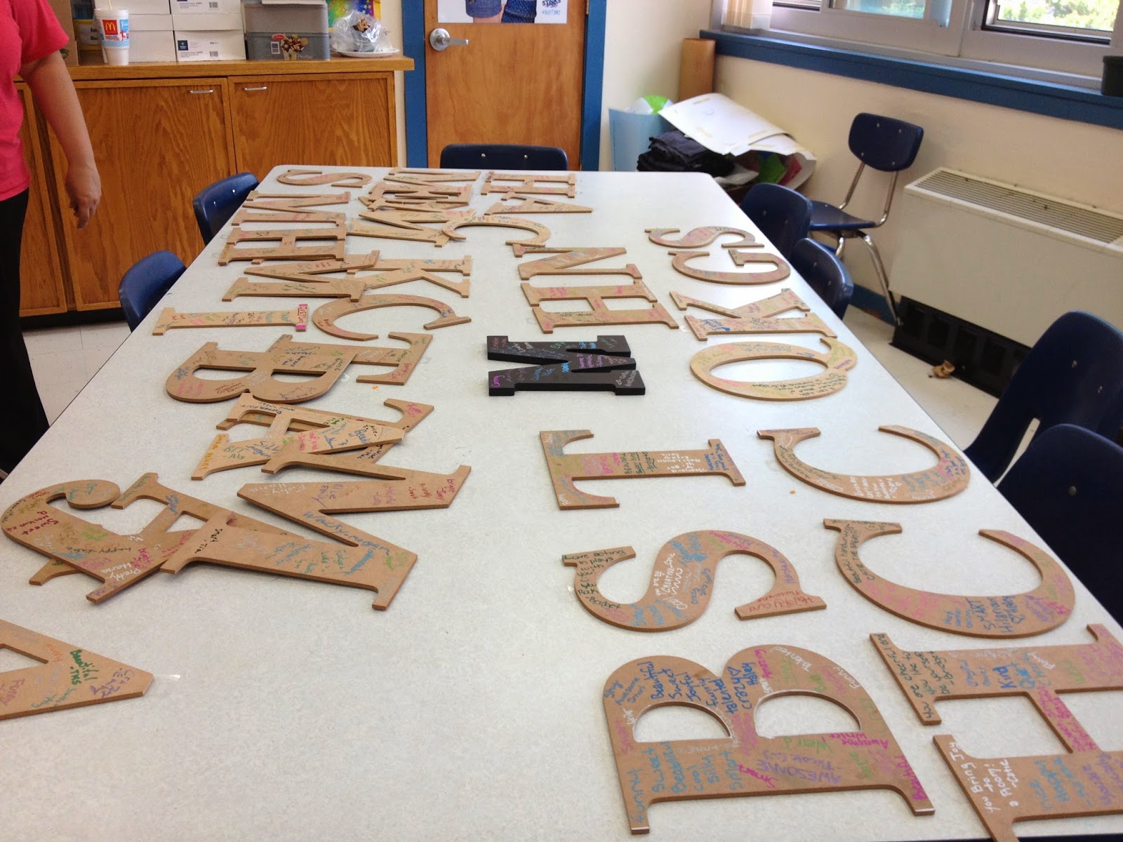 I was given a $100 budget for lunch bunch for this year, and I saved it all for this project.  I bought 39 initials for my two groups.  I also bought a few ink pens and markers.