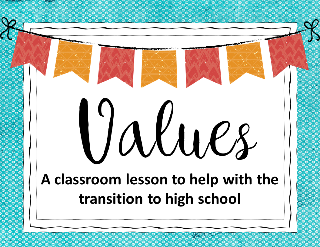 Value, we decided, was what something was worth to us. What we determined to be important. After defining value, we talked about how our choices and actions, and our really big plans, usually were decided upon because of our values. I told them that we would be looking at these values because they will have some importance as we move forward with high school planning.