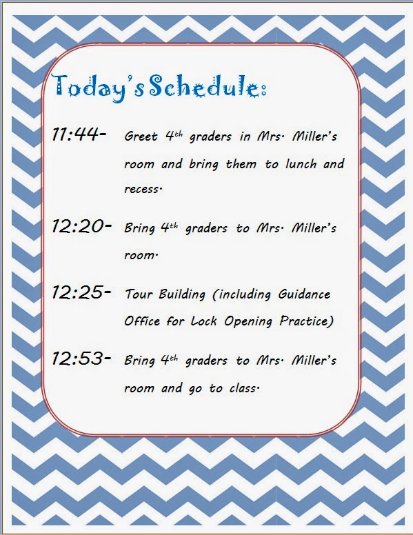Once every 4th grader and tour group rotated through, I had them all return to my office when done.  I had them write one thing they learned about the middle school on this paper: