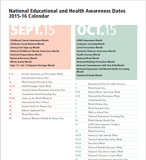 5. Set your yearly calendar. This is important. Do you have a plan for your year? Even if you are a first year counselor, you need to have a general understanding of how the school year will go. I always start with a yearly calendar and then fill in school vacations, marking periods, and PD days. I also look at the district calendar to see if there are any special events that I should include. From there I look at my biggest projects and write those in–grade 8 scheduling, NYS testing, and the Giving Tree Program are a few examples. Then I look at a calendar of special days to see if there are other days I want to incorporate into my program–Mix It Up Day, World Food Day, Red Ribbon Week, etc. ASCA has a link of National Educational and World Health Dates.